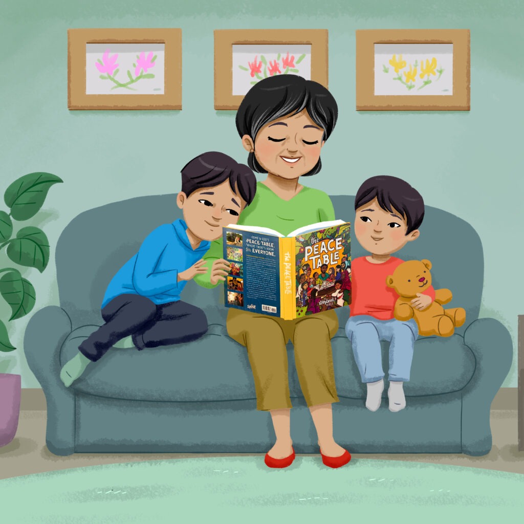 The Bible is the story of God’s people. Sing ‘books of the Bible’ songs. Memorize key Bible verses together. Learn to look up verses by book and chapter. Read a good story Bible like The Peace Table then talk about the story, wonder and pray together.